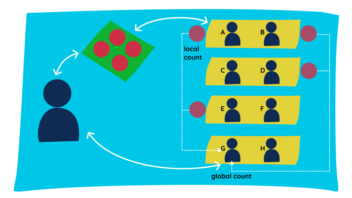 - The instructor also needs the total count, so they ask student G to get the grand total.